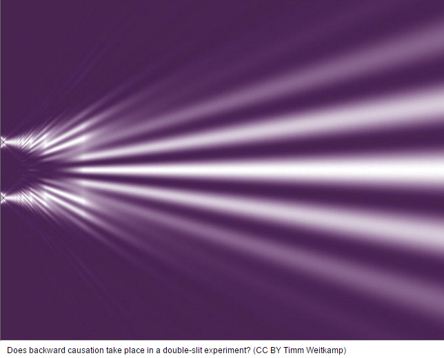 “Indeed, the results of both Truscott and Aspect’s experiments [show] that [an object]’s wave or particle nature is most likely undefined until a measurement is made. The other less likely option would be that of backward causation — that the particle somehow has information from the future — but this involves sending a message faster than light, which is forbidden by the rules of relativity.”