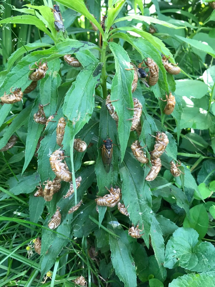 Molted exoskeletons still litter the ground, or cling to flowerstems & the lower bark of trees. But my kids are finding few fresh ones. Nearly all the cicadas who are going to emerge in our town this year have already done so.